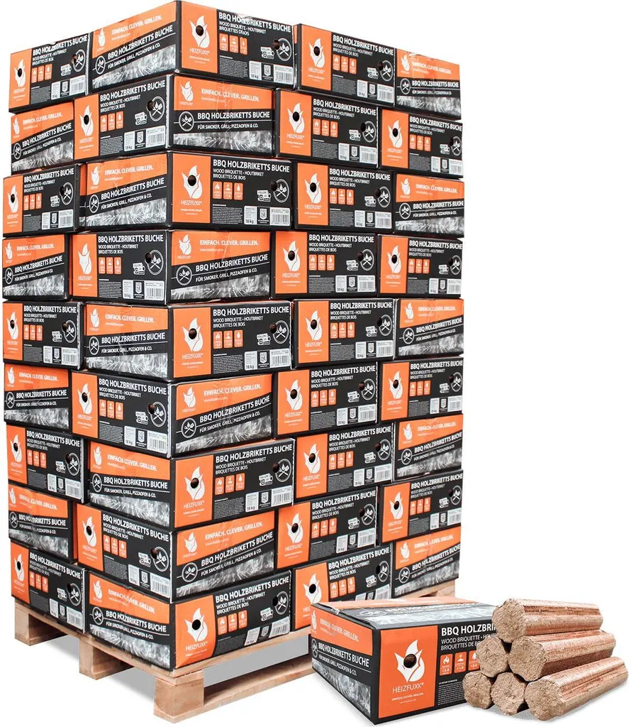 Heizfuxx BBQ-Buchenholzbriketts 18kg x 54 Gebinde 972kg PaletteHeizfuxx BBQ-Buchenholzbriketts 18kg x 54 Gebinde 972kg Palette